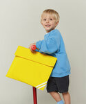 Hi-viz reflective strips, concealed name card holder on the back. Webbing handle.
